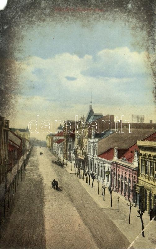 Leírás: 1916 Szolnok, Szapáry utca, Otthon kávéház, mozi, üzletek, zsinagóga. Kiadja Gettler József (EM)