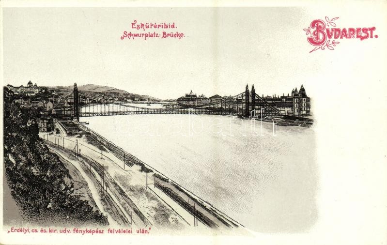 Budapest, Eskü téri híd (Erzsébet királyné híd). litho https://www.darabanth.com/hu/359-Gyorsarveres/359.0/Kepeslapok/Magyarorszag~1000004/Budapest-Esku-teri-hid-Erzsebet-kiralyne-hid-litho~II2067828