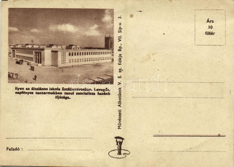 Leírás: Dunaújváros, Dunapentele, Sztálinváros; Általános iskola. Művészeti Alkotások kiadása (EK)