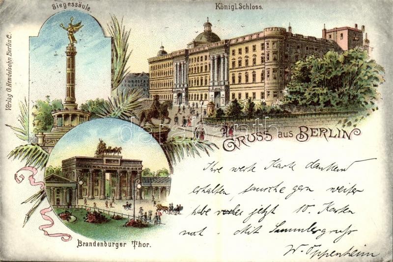 1898 Berlin, Siegessäule, Königl. Schloss, Brandenburger Thor. Verlag ... https://www.darabanth.com/hu/359-Gyorsarveres/359.0/Kepeslapok/Nemetorszag~1000048/1898-Berlin-Siegessaule-Konigl-Schloss-Brandenburger-Thor-Verlag-G-Hendelsohn-monument-ro~II2067260