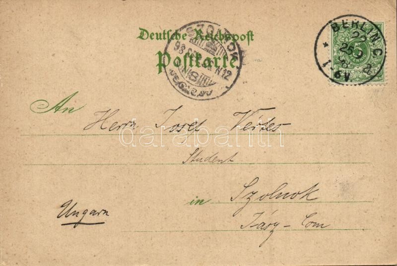 Leírás: 1898 Berlin, Siegessäule, Königl. Schloss, Brandenburger Thor. Verlag G. Hendelsohn / monument, royal castle, gate. Art Nouveau, floral, litho (EK)