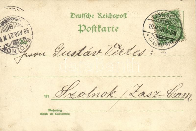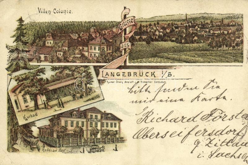 1898 Langebrück (Dresden), Villen Colonie, Kurbad, Hotel zur Post / villas, hotel, spa, baths. Kunst Druck Anstalt W. Schaller Art Nouveau, floral, litho (EK)