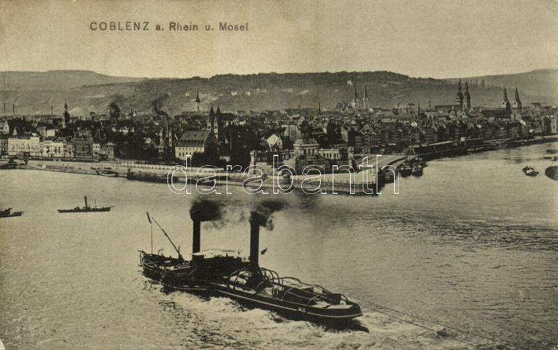 Koblenz, Coblenz; Rhein und Mosel / steamship (EK) https://www.darabanth.com/hu/359-Gyorsarveres/359.0/Kepeslapok/Nemetorszag~1000048/Koblenz-Coblenz-Rhein-und-Mosel-steamship-EK~II2064618