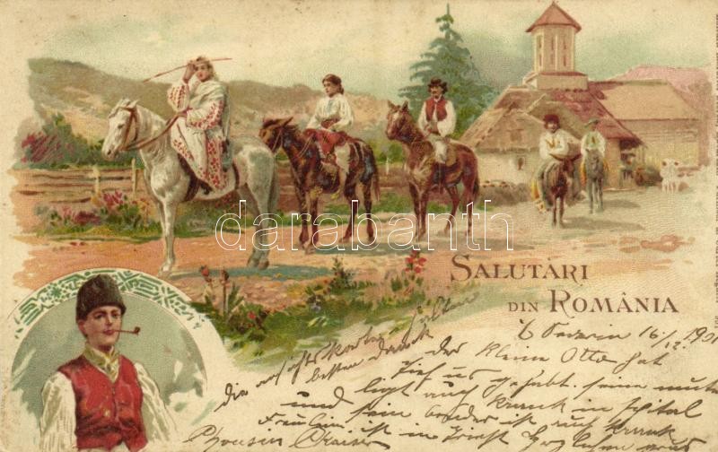1901 Salutari din Romania! Librariei Storck 951. / Greetings from Roma... https://www.darabanth.com/hu/359-Gyorsarveres/359.0/Kepeslapok/Romania~1000058/1901-Salutari-din-Romania-Librariei-Storck-951-Greetings-from-Romania-Art-Nouveau-folklore-lit~II2066312