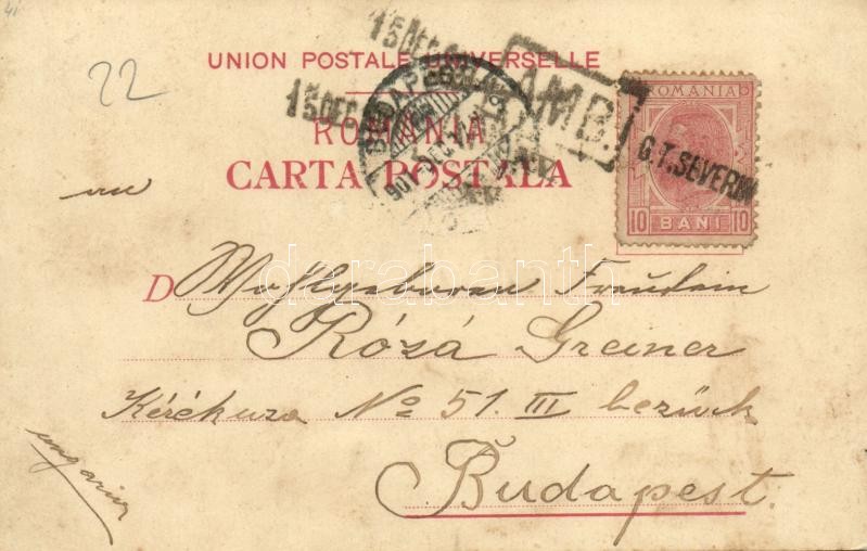 Leírás: 1901 Salutari din Romania! Librariei Storck 951. / Greetings from Romania! Art Nouveau, folklore litho art postcard (cut)