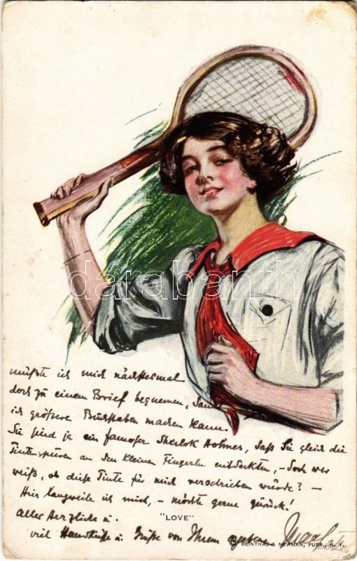 Leírás: Love. Lady with tennis racket. Reinthal & Newman No. 128. (EK)