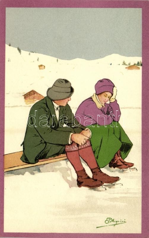 Leírás: Winter sport art postcard. Ice skating. Vouga & Cie No. 114. litho s: Pellegrini
