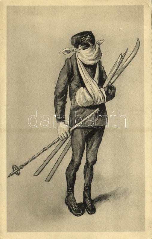 Winter sport art postcard. Skier with broken arm (EK) https://www.darabanth.com/hu/359-Gyorsarveres/359.0/Kepeslapok/Sport~1000104/Winter-sport-art-postcard-Skier-with-broken-arm-EK~II2067337