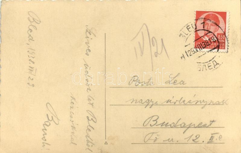 1938 Bled, Veled; Pogacník fot. photo https://www.darabanth.com/hu/359-Gyorsarveres/359.0/Kepeslapok/Szlovenia~1000067/1938-Bled-Veled-Pogacnik-fot-photo~II2067219