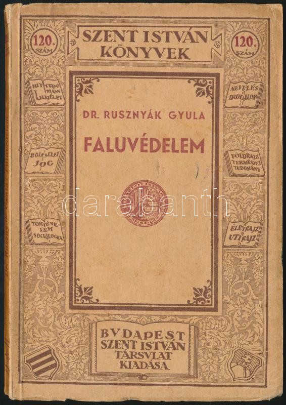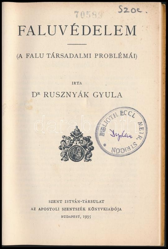 Dr. Rusznyák Gyula: Faluvédelem. (A falu társadalmi problémái). Szent István Könyvek 120. Bp., 1935, Szent István-Társulat. Kiadói papírkötésben, intézményi bélyegzővel.