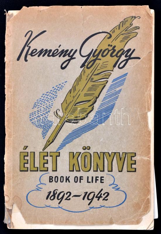 Leírás: Kemény György: Élet könyve - Book of life 1892-1942. Dr. Eckhardt Tibornak dedikált. Kiadói papírborítóval, ami elvált a könyvtesttől.