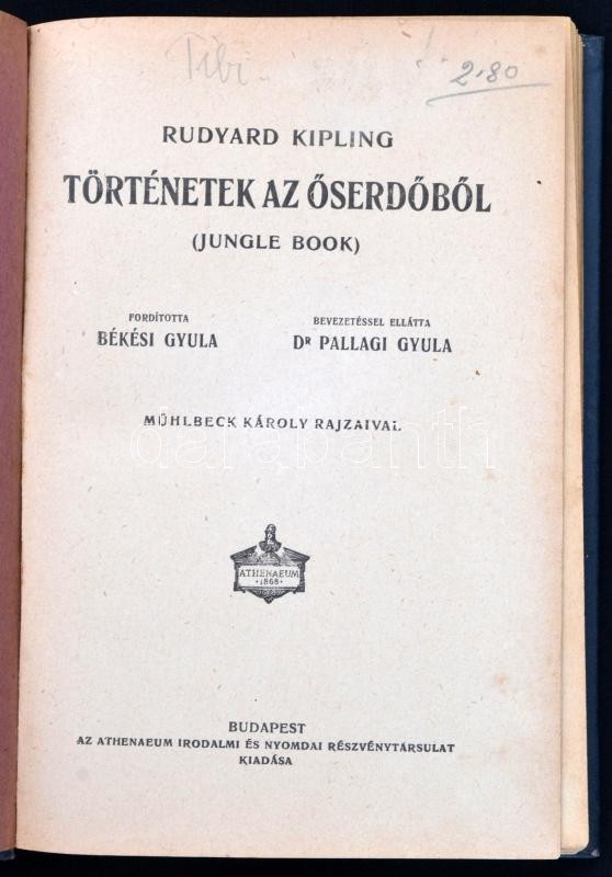 Leírás: Kipling, Rudyard: Történetek az őserdőből (Jungle Book). Bp., Athenaeum. Kiadói aranyozott egészvászon kötés, szakadt gerinccel, kopottas állapotban.