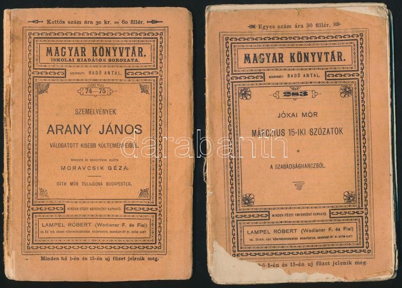 Bp., én.-1902, Lampel R. (Wodianer F. és Fiai.) Kiadói papírkötés, az utóbbi kötése szétvált, a borítója szakadozott, a másik gerince szakadt, részben szétvált.