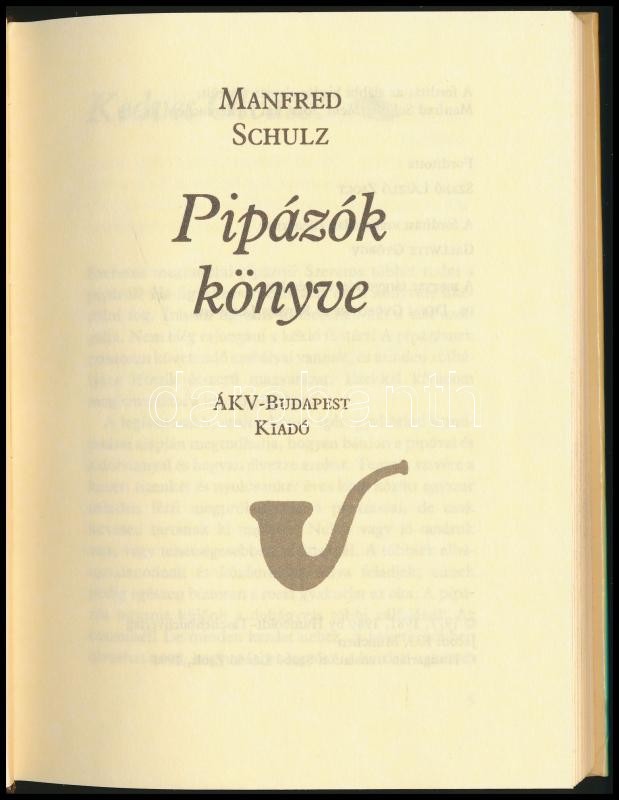 Leírás: Manfred Schulz: Pipázók könyve. Ford.: Szabó László Zsolt. Bp.,1991,ÁKV. Kiadói kartonált papírkötés.