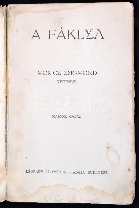 Móricz Zsigmond: A fáklya. Bp., Légrády Testvérek. Kiadói papírkötés, ... https://www.darabanth.com/hu/359-Gyorsarveres/359.0/Konyvek/Konyvek-Egyeb-ritkasagok~1500022/Moricz-Zsigmond-A-faklya-Bp-Legrady-Testverek-Kiadoi-papirkotes-gerincnel-szakadt-v~II2053442