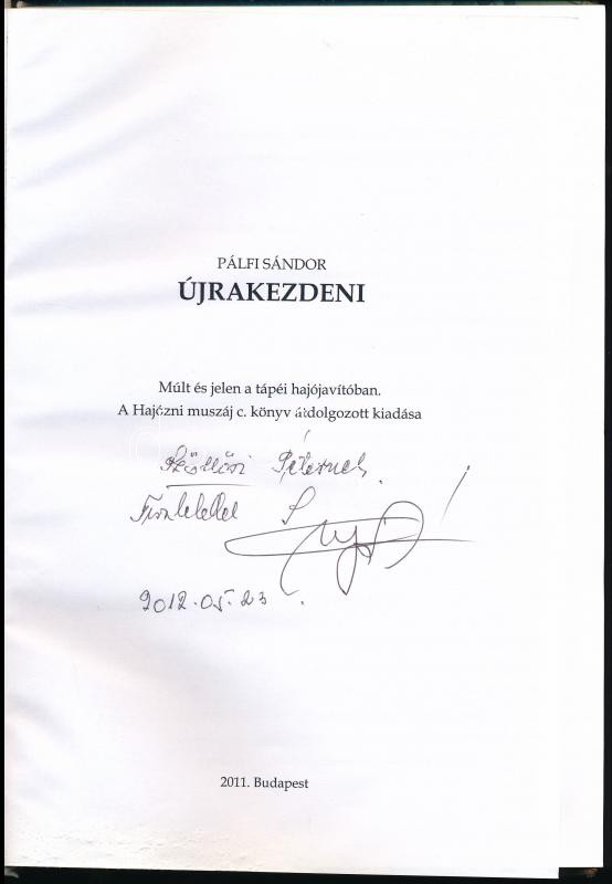 Pálfi Sándor: Újrakezdeni. Bp., 2011, Szerzői. Kiadói kartonált papírkötés, a lapszéleken és a borító alsó sarkain sérülésnyomokkal. A szerző által dedikált.