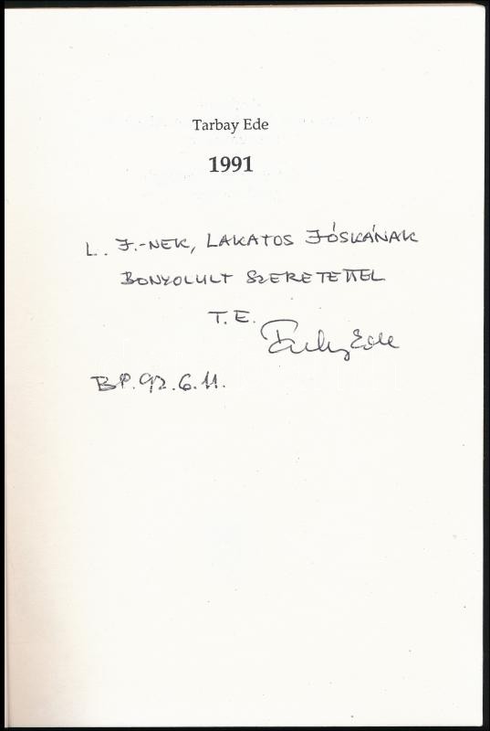Tarbay Ede: 1991.; Parázs a füvön. Bp., 1992, Széphalom Könyvműhely.. ...