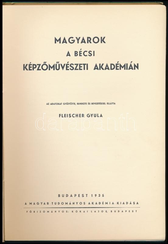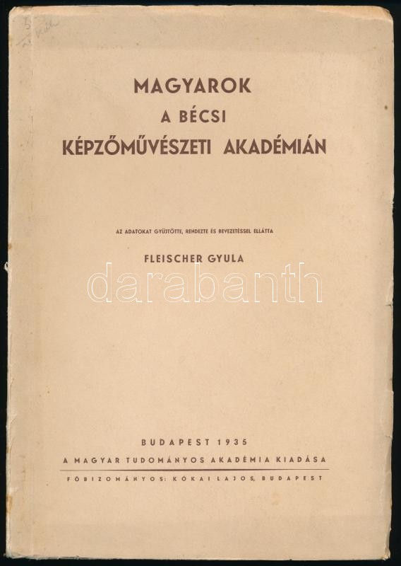 Leírás: Fleischer Gyula: Magyarok a bécsi képzőművészeti akadémián. Bp., 1935, MTA, 108 p. Kiadói papírkötés.