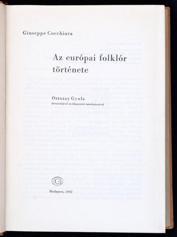 Leírás: Guiseppe Cocchiara: Az európai folklór története Gondolat Kiadó, 1962. Kiadói egészvászon kötésben