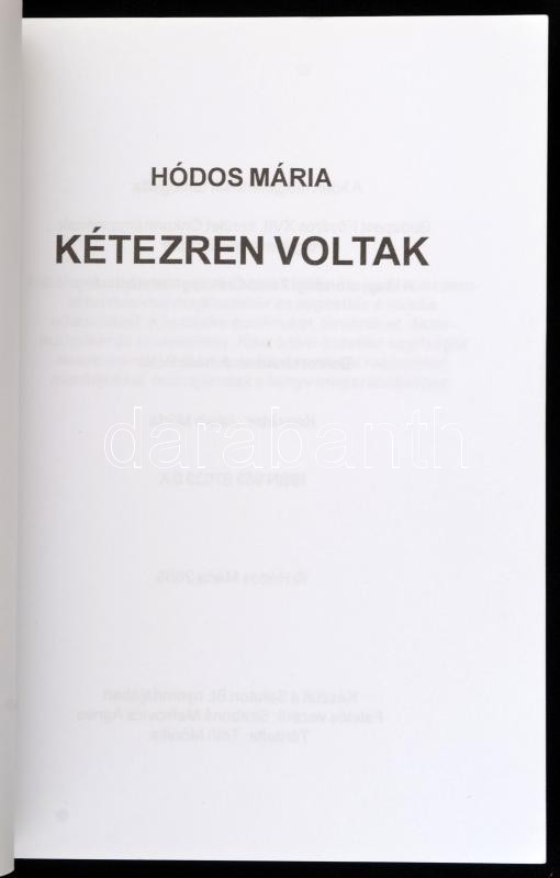 Leírás: Hódos Mária: Kétezren voltak. Bp.,2006,Saluton. Kiadói papírkötés. A könyvhöz tartozó kártyán a szerző, Hódos Mária (1959-) saját kezű dedikációjával!