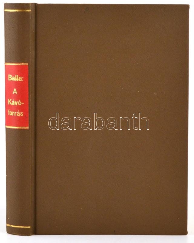 Balla Vilmos: A kávéforrás. Régi pesti kávéházak legendái. Bp.,1927, (Légrády-ny.), 239+1 p. Második kiadás. Átkötött modern egészvászon-kötésben, az elülső papírborítót bekötötték, jó állapotban.