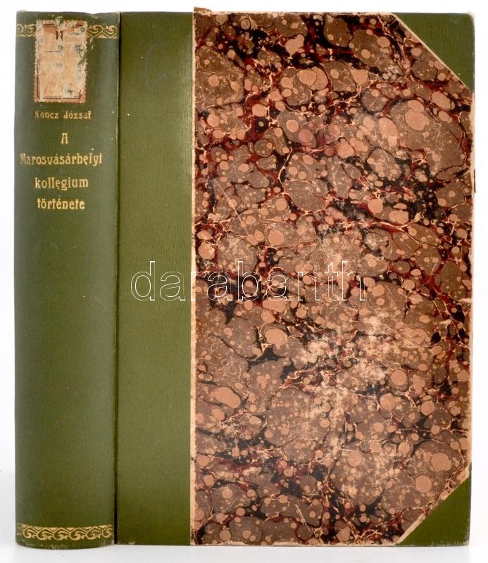Koncz József: A marosvásárhelyi evangélikus református kollégium története. Különlenyomat a Kollegium 1883-1888. és 1894/1895. iskolai évi értesítőiből. Bp.,1896, Sztujpár István a Református Kollégium betűivel, 774 p. Átkötött félvászon-kötés, kopott borítóval, intézményi bélyegzővel, festett lapélekkel.