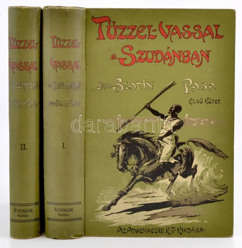 [Slatin, Rudolf Carl von]: Slatin Rudolf pasa: Tűzzel-vassal a Szudánban. Küzdelmeim a dervisekkel, fogságom és szökésem. 1879-1895. I.-II. köt. Ford.: Dr. Jankó János. Bp., 1896., Athenaeum, 1 t. (címkép.)+XI+465+2 p.+9 t.+1 térkép+329+4p.+10 t.+1 térkép. Számos fekete-fehér egészoldalas képpel illusztrálva. Kiadói festett egészvászon kötésben, márványozott lapélekkel, jó állapotban.