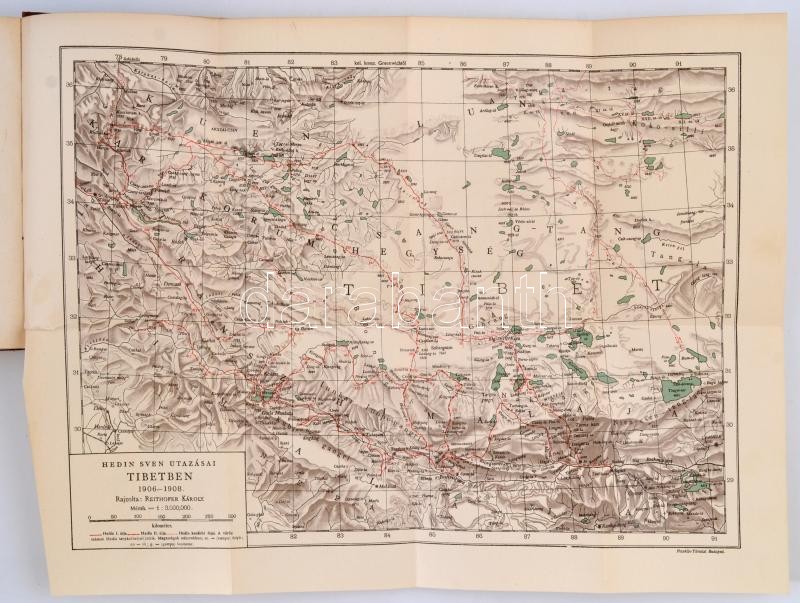 Sven Hedin: Transzhimalája. Felfedezések és kalandok Tibetben. Ford.: Kondor Alfréd. Magyar Földrajzi Társaság Könyvtára. Bp., é.n., Lampel R. (Wodianer F. és Fiai), VI+330 p.+1 kihajtható térkép. Fekete-fehér fotókkal illusztrált. Kiadói aranyozott félvászon sorozat kötésben, kopott borítóval, a 4 színes egészoldalas és 1 színes panoráma kép hiányzik.