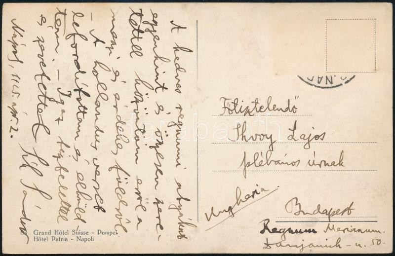 Leírás: 1925 Sík Sándor (1889-1963) költő, műfordító, irodalomtörténész által saját kézzel írt és aláírt képeslap Shvoy Lajos későbbi püspök részére
