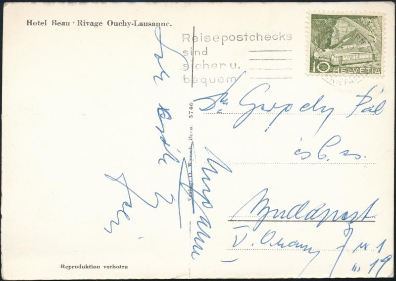 Leírás: 1954 Czibor Zoltán az Aranycsapat labdarúgója által írt képeslap a világbajnokságról apósának