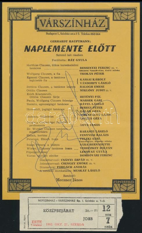 Leírás: Bessenyei Ferenc (1919-2004) színész aláírása programismertetőn