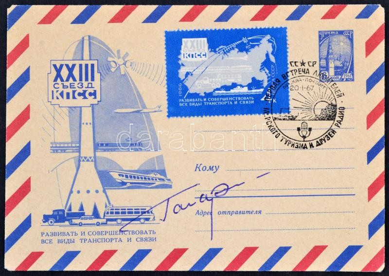 Jurij Alekszejevics Gagarin (1934-1968) szovjet űrhajós aláírása emlékborítékon / Signature of Yuriy Alekseyevich Gagarin (1934-1968) Soviet astronaut on envelope