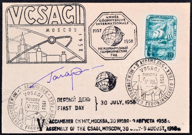 Jurij Alekszejevics Gagarin (1934-1968) szovjet űrhajós aláírása emlékborítékon / Signature of Yuriy Alekseyevich Gagarin (1934-1968) Soviet astronaut on envelope