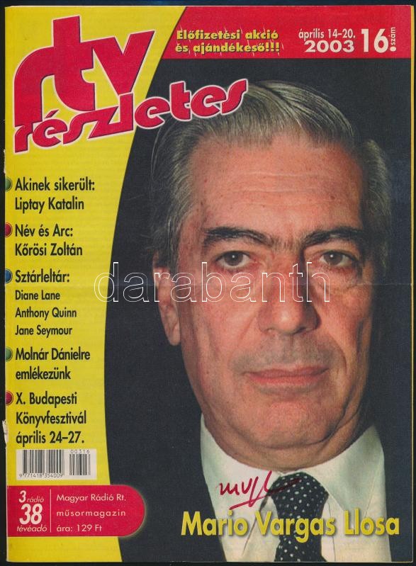 Leírás: Mario Vargas Llosa (1936-) újságíró aláírása újság címlapján