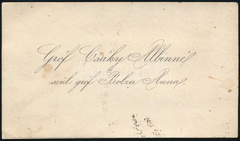 cca 1870 gróf Bolza Anna (1847-?), gróf Csáky Albinné névjegye és sajá... https://www.darabanth.com/hu/359-Gyorsarveres/359.0/Mutargy-papirregiseg-egyeb/Alairas~500020/cca-1870-grof-Bolza-Anna-1847-grof-Csaky-Albinne-nevjegye-es-sajat-kezzel-irt-sorai-gr~II2066822