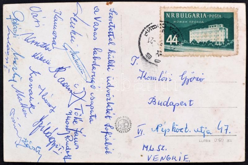 Leírás: cca 1960 Vasas labdarúgók aláírása képeslapon Szófiából