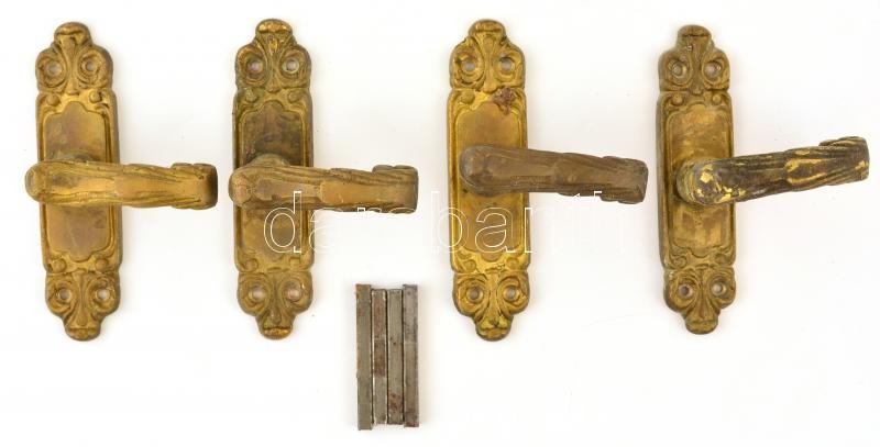 2 pár régi réz kilincs alkatrésszel, 13×8 cm