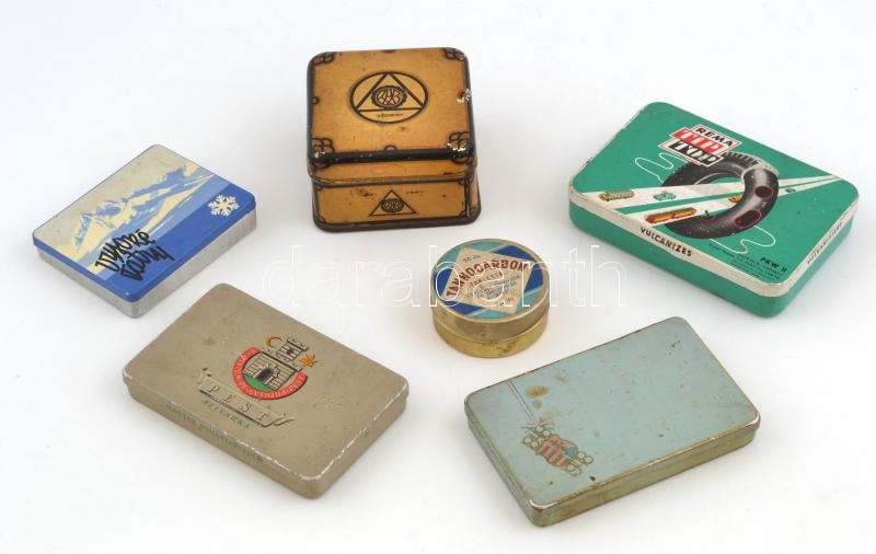 Leírás: 6 db vegyes fém doboz (Tannocarbon, Pest szivarka, stb.)