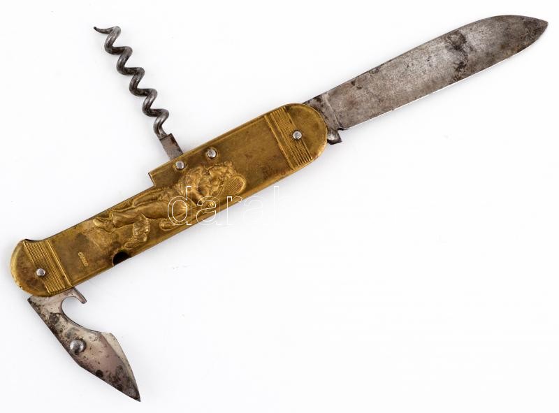 Leírás: Coursole jelzéssel: teniszezőt és boxolót ábrázoló bicska. Réz, fém, összecsukva 10 cm