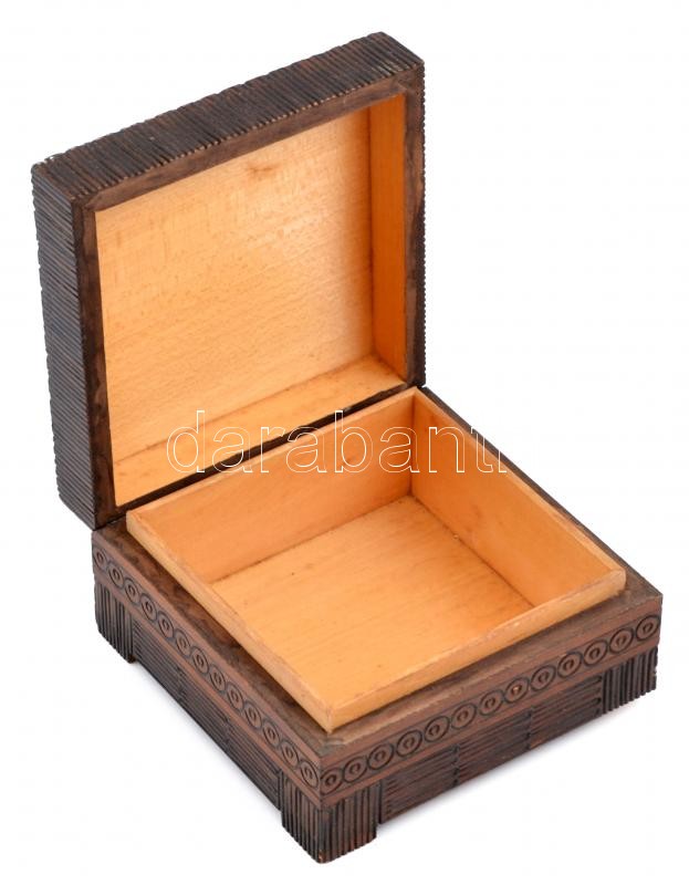 Díszes, faragott fa doboz, egy hiányzó lábbal, 12x12x7 cm https://www.darabanth.com/hu/359-Gyorsarveres/359.0/Mutargy-papirregiseg-egyeb/Bolhapiac~500012/Diszes-faragott-fa-doboz-egy-hianyzo-labbal-12x12x7-cm~II2032278
