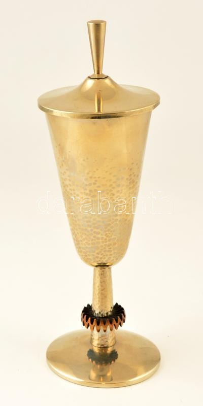 Leírás: Fedeles fém kupa, belül rozsdacsíkkal, m: 27 cm