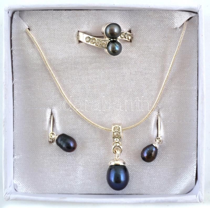 Leírás: Festett gyöngy szett, cirkón kövekkel, eredeti dobozkájában