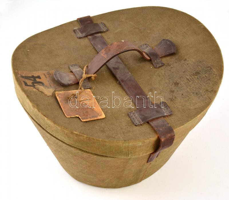 Leírás: Pollák István kalapgyáros jelzett cilinder szép állapotban, kemény, vászonborítás, hordozható kalaptartóban 54 es méret