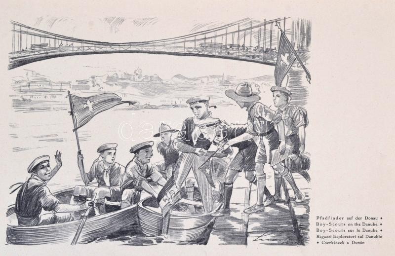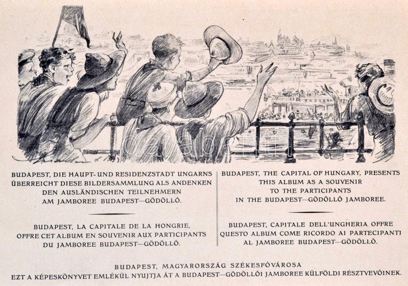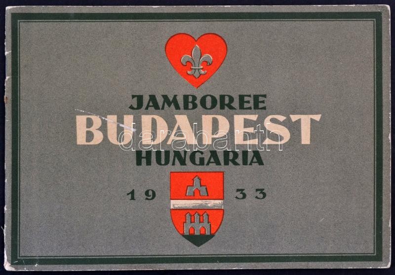 1933 Jamboree Budapest Hungaria 16 oldalas emlékfüzet a külföldi résztvevőknek. Magyar, angol, német, francia, és olasz nyelven. Márton Lajos és Richter Aladár grafikákkal. Kiadói kissé kopott borítóval. /