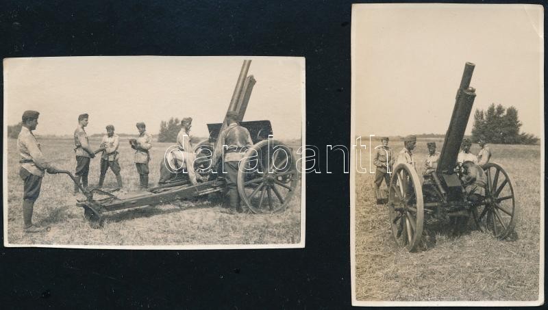 Leírás: cca 19230-1940 Katonák ágyúval, 2 db fotó, 5,5×8 cm