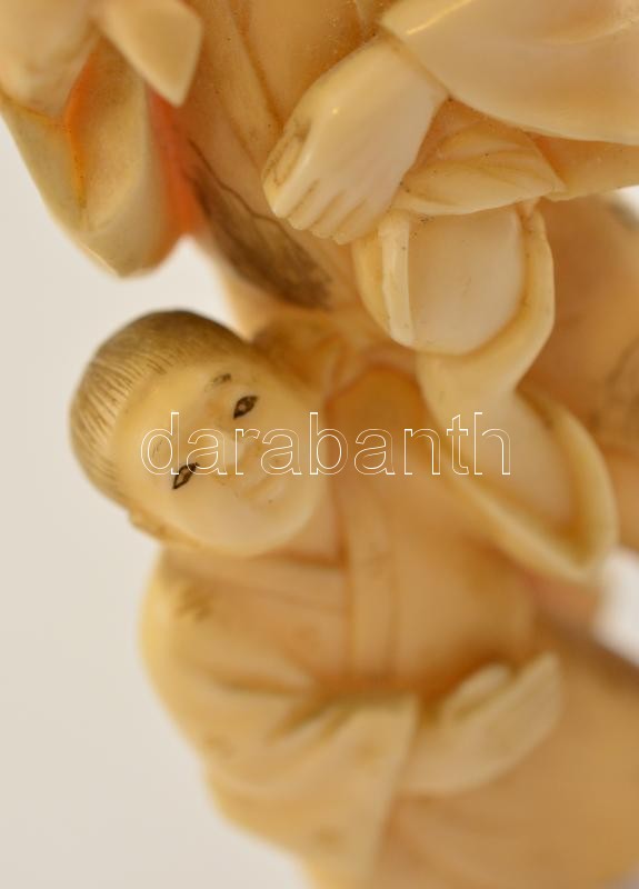 Leírás: XX.sz.e apa a fiával, festett, elefántcsont, necuke / netsuke jelzett, m: 9,5 cm