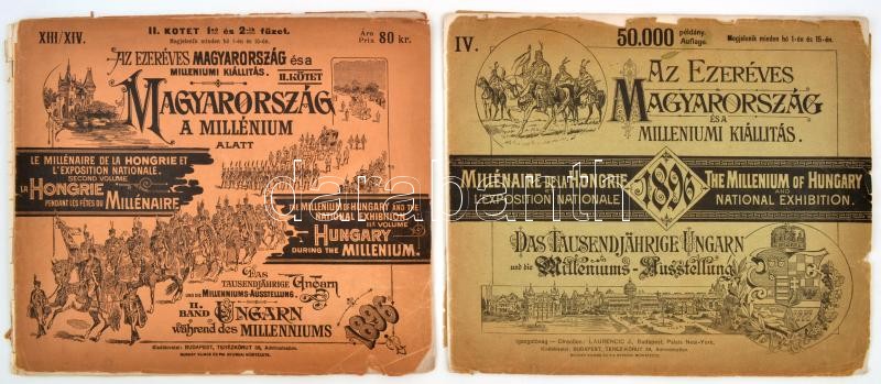 Leírás: 1896 Az Ezeréves Magyarország és a milleniumi kiállítás IV. és XIII/XIV füzet. Szakadozott borítóval.