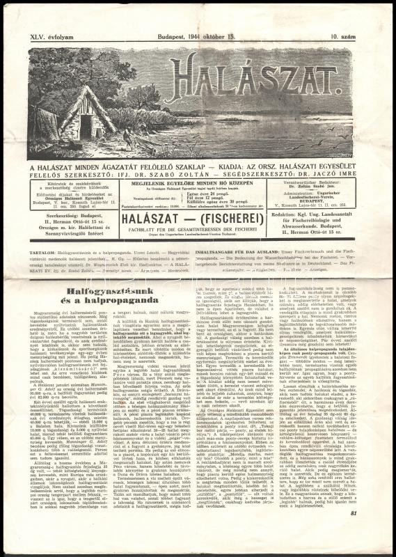 1944 Bp., Halászat, A halászat minden ágazatát felölelő szaklap, XLV. ... https://www.darabanth.com/hu/359-Gyorsarveres/359.0/Mutargy-papirregiseg-egyeb/Nyomtatvanyok~500030/1944-Bp-Halaszat-A-halaszat-minden-agazatat-felolelo-szaklap-XLV-evfolyam-10-szam~II2061889
