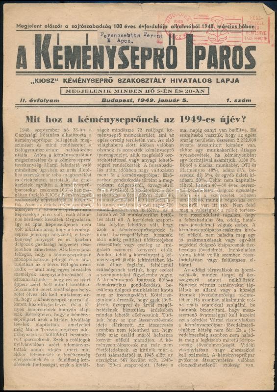 1949 Kéményseprő iparosok lapja II. évf 1. szám https://www.darabanth.com/hu/359-Gyorsarveres/359.0/Mutargy-papirregiseg-egyeb/Nyomtatvanyok~500030/1949-Kemenysepro-iparosok-lapja-II-evf-1-szam~II2063322