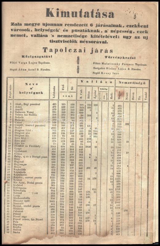 cca 1850 Kimutatása Zala megye 6 járásainak, városok és helységek neve... https://www.darabanth.com/hu/359-Gyorsarveres/359.0/Mutargy-papirregiseg-egyeb/Nyomtatvanyok~500030/cca-1850-Kimutatasa-Zala-megye-6-jarasainak-varosok-es-helysegek-nevei-A-nepesseg-nevsora~II2061943